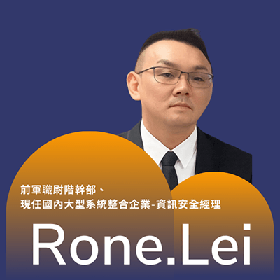本次分享會邀請 Rone.Lei——前軍職尉階幹部、現任國內大型系統整合企業-資訊安全經理。